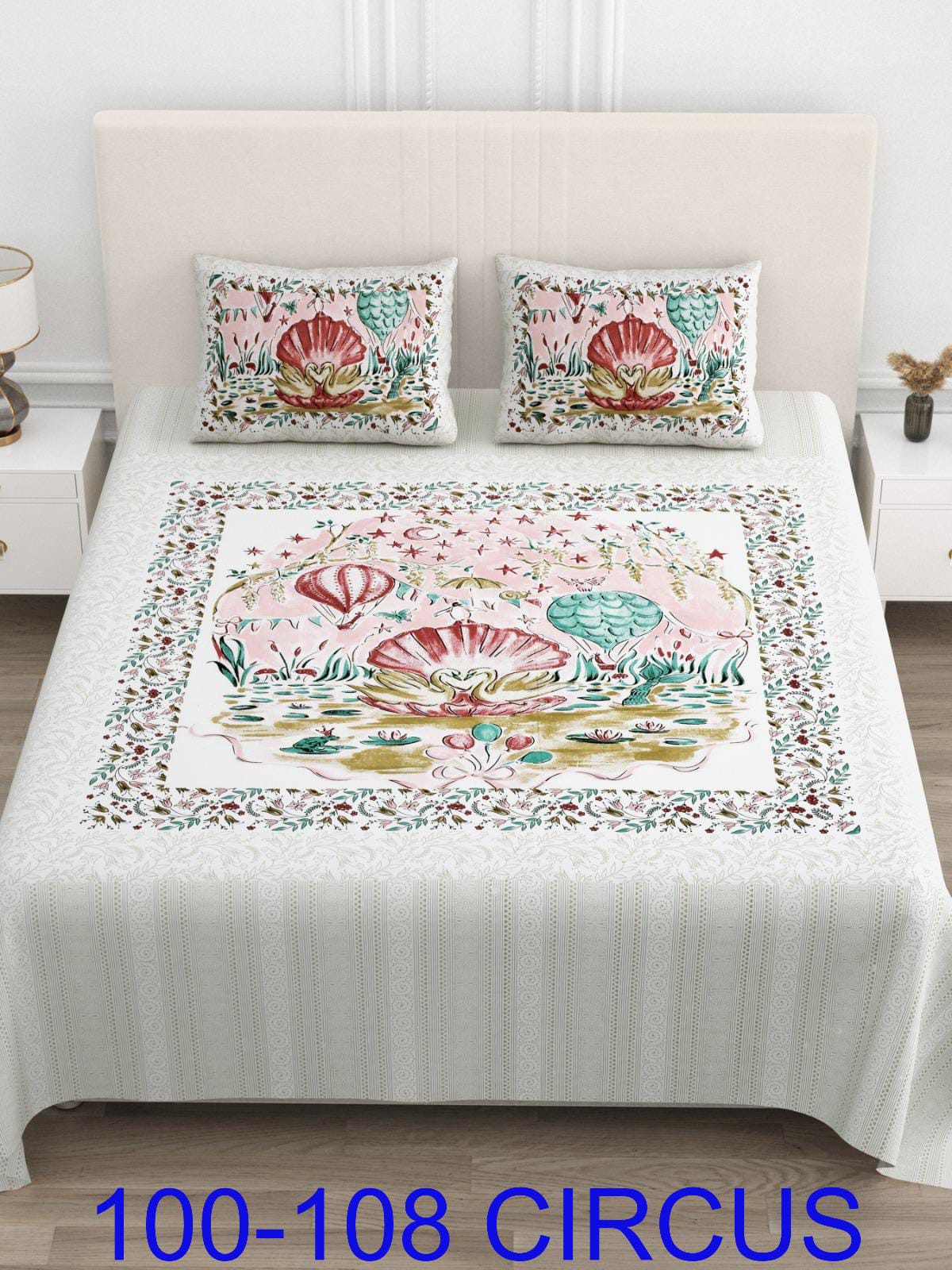 Size BEDSHEET – 100 by 108 inches PILLOW COVER – 18 by 27 inches Sides stitched
