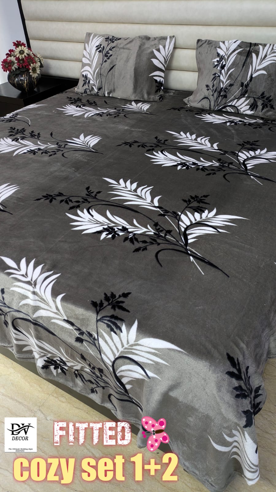 one super soft velvet touch cozy fitted double bed sheet with two zipped pillow covers