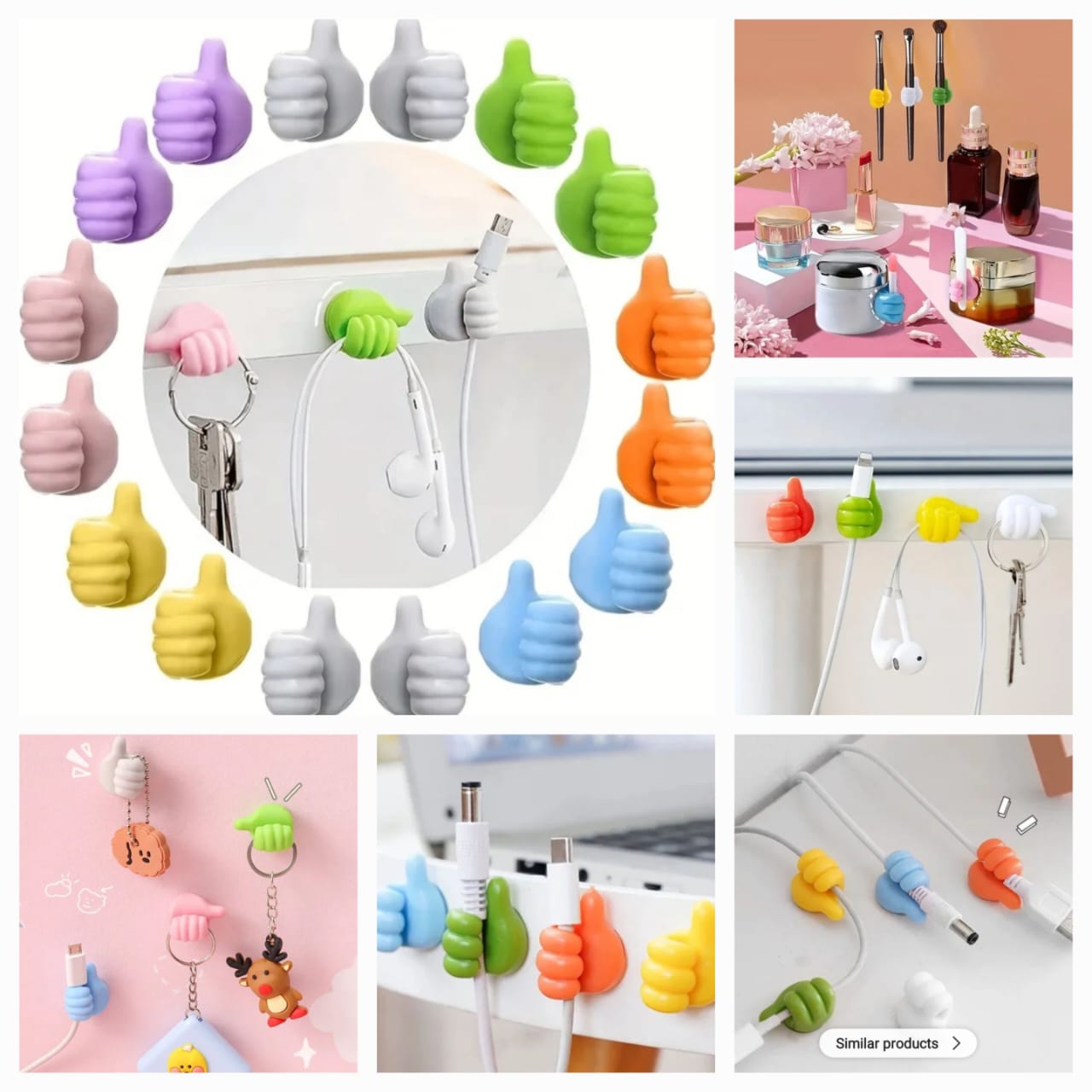 Thumb Hook Holder | Silicone Wall Hook | Creative Thumbs Up Shape Wall Hook | Multifunctional Thumb Hook Holder | Cable Clip Organizer , Key Hook | Wall Hangers for Home Office Bedroom |